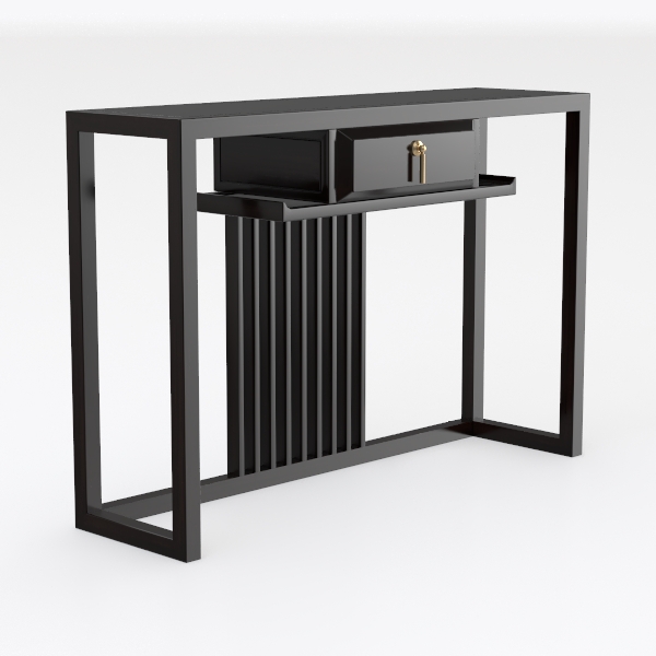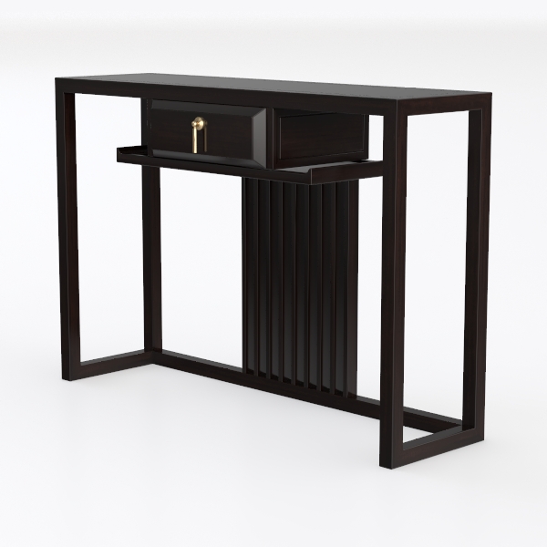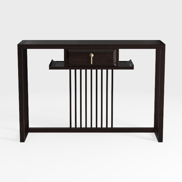Inspired by traditional Eastern aesthetics, this piece blends minimalist lines with a warm, dark wood finish. The smooth, polished surface reveals natural wood grains, while a sleek gold handle on the drawer adds subtle elegance. Ideal for entryways or living corners, it complements new Chinese or modern minimalist styles, paired with potted plants or wall art. A functional storage space, its vertical slats enhance lightness, making it both practical and visually harmonious.