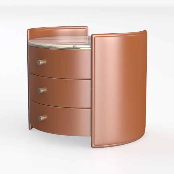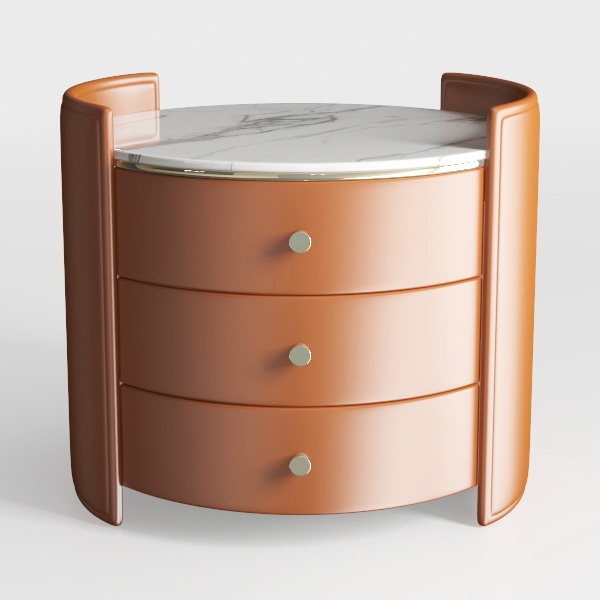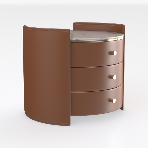 Inspired by Art Deco, this piece blends warm curves with modern elegance. Soft, smooth brown surfaces contrast beautifully with the cool, veined marble top, accented by subtle gold handles. Perfect for a modern-luxe bedroom, pairing seamlessly with minimalist beds and soft ambient lighting. Three spacious drawers offer ample storage, while the curved silhouette adds a gentle, inviting touch to your sleep space.