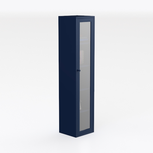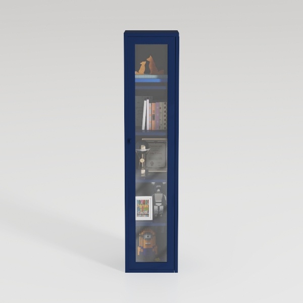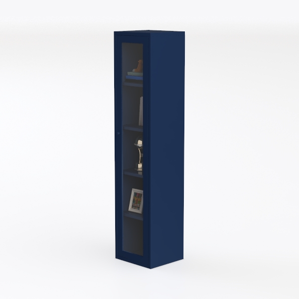 Inspired by balancing minimalist aesthetics with functional display, this elegant cabinet features smooth navy wood and clear glass doors. Its sleek lines and rich hue create a calm, modern vibe, while transparent panels showcase contents beautifully. Perfect for modern living rooms or home offices, complementing both Scandinavian and mid-century modern styles. Spacious shelves with adjustable design offer flexible storage, keeping items organized and accessible.