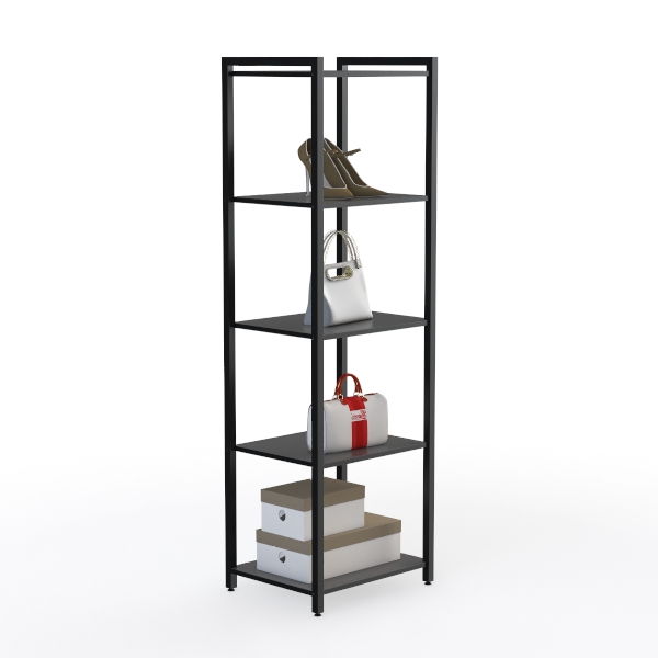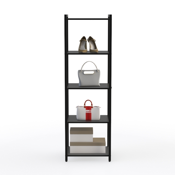 Inspired by minimalist organization, this sleek black shelf blends functionality with modern elegance. Its smooth, matte frame and sturdy build offer a clean, uncluttered look, while polished leather bags and metallic heels add subtle contrast. Perfect for a contemporary bedroom or walk-in closet, it organizes shoes, bags, and accessories efficiently, balancing style and practicality for a clutter-free space.