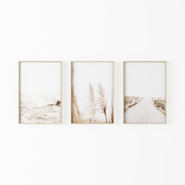 Framed Boho Abstract Beach Wall Art for Living Room, Large Neutral Coastal Canvas Prints Artwork for Walls, Set of 3 Piece Modern Minimalist Ocean Picture Print for Hallway Office Wall Decor, 24x36 In