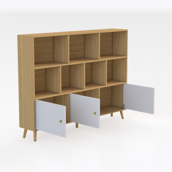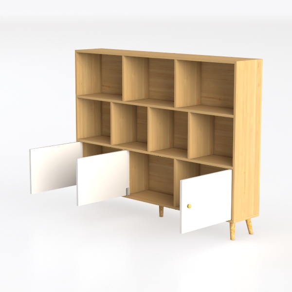 Inspired by natural minimalism, this piece features warm, natural wood grain with a soft contrast between light wood and crisp white doors, creating a clean, uncluttered look. Ideal for modern Scandinavian or minimalist living rooms, it pairs beautifully with linen sofas and potted greenery. Spacious open shelves and closed storage compartments offer ample organized storage for books, decor, and daily essentials.