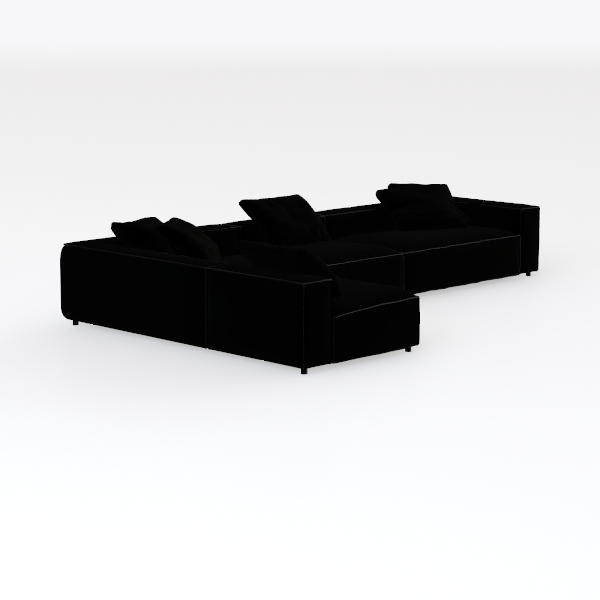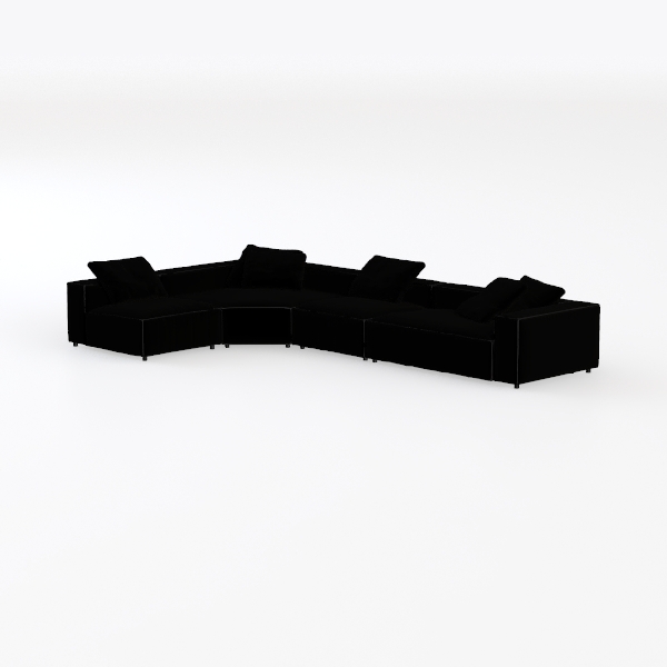 Crafted with architectural precision, this L-shaped sofa takes cues from the minimalist ethos of modern design, balancing sharp lines with soft, flowing curves. Its plush, velvety texture invites tactile connection—rich yet lightweight, the deep black hue exudes understated luxury, casting a warm, grounding glow in any room.