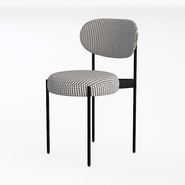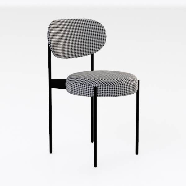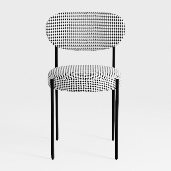 Inspired by mid-century modern minimalism, this chair features a charming timeless houndstooth pattern in black and white, adding subtle visual interest. Its soft, well-padded, contoured upholstery and thin, sleek black metal legs create a clean, sophisticated look, blending retro charm with modern simplicity. Perfect for modern dining rooms or minimalist living spaces with its understated elegance, it pairs beautifully with wooden tables or marble accents. The ergonomic curved backrest and plush seat depth offer exceptional comfort, making it both stylish and functional.