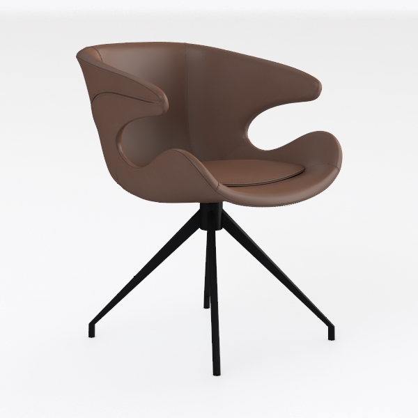 Inspired by organic curves, this armchair blends soft, warm brown leather with sleek black metal legs, creating a mix of natural elegance and modern minimalism. Its contoured back and seat offer ergonomic support, while the smooth leather feels supple to the touch. Perfect for a modern living room or home office, pair it with a marble coffee table and floor lamp to enhance its contemporary charm.