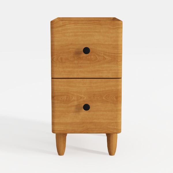 Inspired by Scandinavian minimalism, this piece blends natural warmth with functional design. Its smooth, light wood surface showcases subtle grain patterns, exuding a soft, inviting touch and a clean, uncluttered look. Ideal for a minimalist or Scandinavian bedroom, pairing beautifully with linen bed linens and a sleek brass lamp. Two spacious drawers offer ample storage, while slim, tapering legs add stability and a touch of elegance.