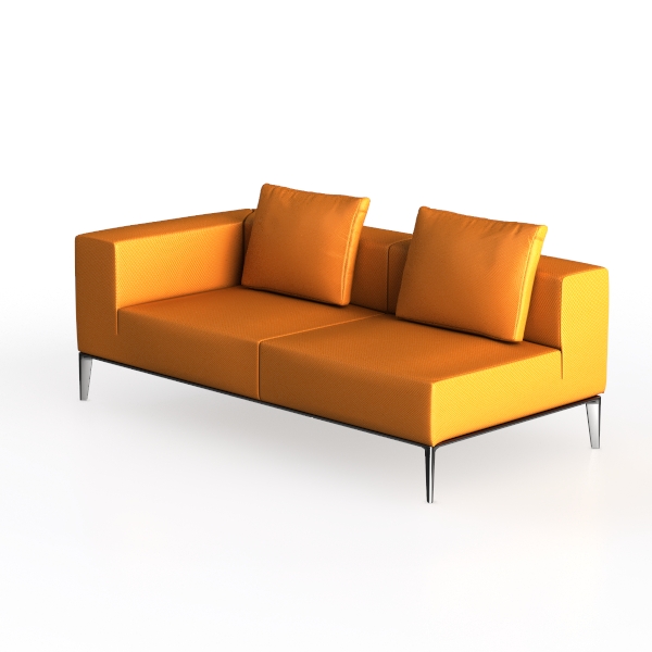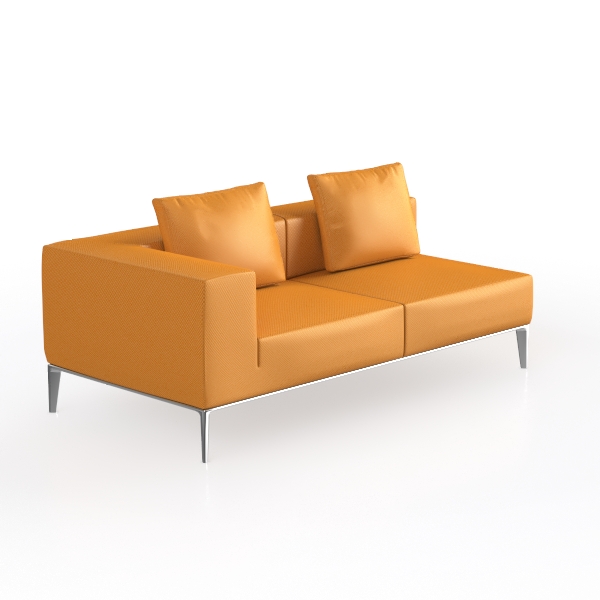 Inspired by the balance of organic warmth and geometric precision, this sofa merges soft, flowing lines with a sleek, uncluttered silhouette, creating a piece that feels both grounded and uplifting. The vibrant terracotta upholstery catches the light gently, its subtle texture offering a tactile contrast—soft yet resilient, it invites you to sink into its embrace. The slim, polished metal legs in a matte finish ground the design, their delicate profile balancing the sofa’s solid form, making the space feel open and airy.