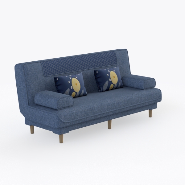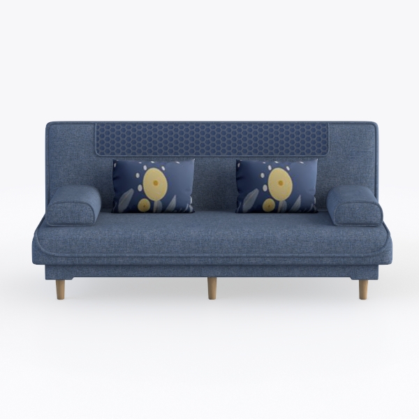 This sofa blends modern simplicity with organic charm, crafted to transform living spaces into inviting retreats. Its design takes subtle cues from nature—specifically, the intricate order of a honeycomb, visible in the textural backrest that adds depth without clutter. The deep navy upholstery, woven from soft, breathable fabric, feels gentle to the touch, while the rounded armrests curve invitingly, offering a cozy spot to rest. Two decorative throw pillows, adorned with cheerful yellow floral patterns and muted gray leaves, introduce a playful contrast, balancing the sofa’s calm palette with lively personality.