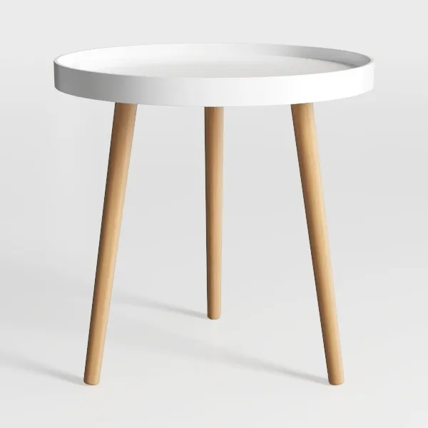 Designed with Scandinavian minimalism and organic warmth, this small side table features a sleek white top with a smooth, cool touch. Slender wooden legs add natural warmth, creating a light, stable silhouette. Ideal for modern, Scandinavian living rooms or bedrooms, it pairs with soft sofas and plants, offering space for books or decor—blending function with understated style.