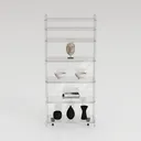 With six open shelves, it offers versatile storage and display options—from stacking novels to showcasing decorative bowls or sleek black vases. The four smooth-rolling casters allow effortless movement, making it easy to reposition for a quick room refresh or to free up floor space. Whether you need a functional bookshelf or a stylish display unit, this piece balances aesthetics and practicality, enhancing any living or working environment with its understated elegance.