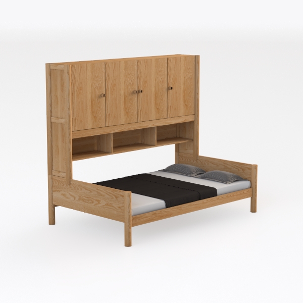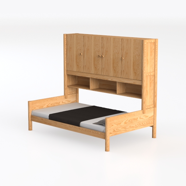 Inspired by blending natural warmth with smart storage, this piece features light oak wood with visible grain, offering a tactile, organic feel. Clean lines and a minimalist design create a calm vibe, perfect for Scandinavian or modern bedrooms, ideal for small spaces needing both rest and storage. Spacious upper cabinets provide ample storage, keeping items organized, enhancing daily comfort.