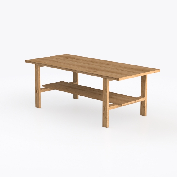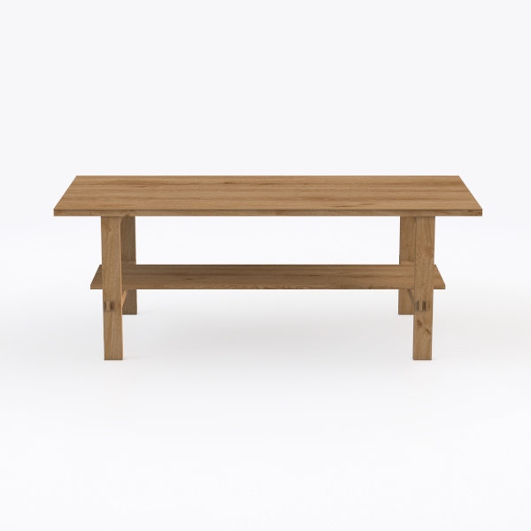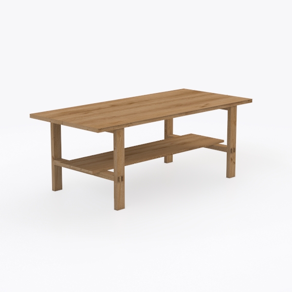Inspired by Scandinavian minimalism, this wooden table blends natural elements with clean lines. Its warm oak tone, with visible wood grain, and smooth, tactile surface exude cozy organic charm, casting a soft, inviting glow. Ideal for modern or rustic living rooms, it pairs beautifully with linen sofas and potted plants, while a lower shelf adds practical storage and sturdy legs ensure stability—stylish and functional.
