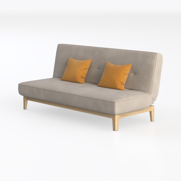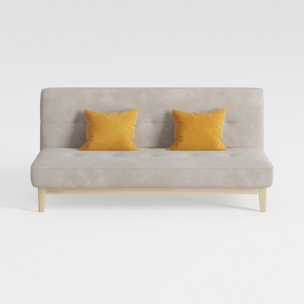 Born from a blend of Scandinavian minimalism and modern comfort, this sofa embodies the essence of a serene yet inviting living space. Its soft, light gray upholstery features a velvety texture that invites gentle touches—warm to the hand, with a subtle sheen that catches light softly. Two plush mustard-yellow cushions, with a rich, buttery texture, nestle symmetrically on the seat, adding a lively contrast that balances the calm neutral base. Supported by slim, light wood legs, the low-profile design feels airy and uncluttered, making it a seamless fit for both compact apartments and open-concept lofts.