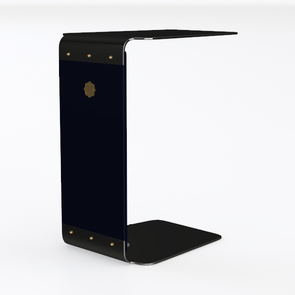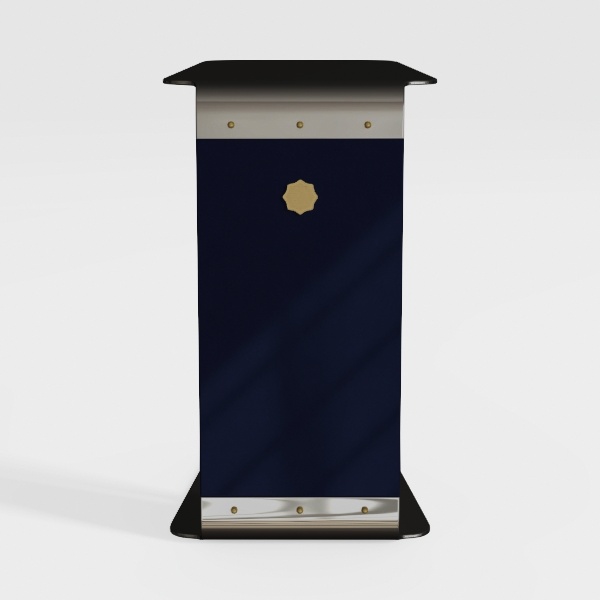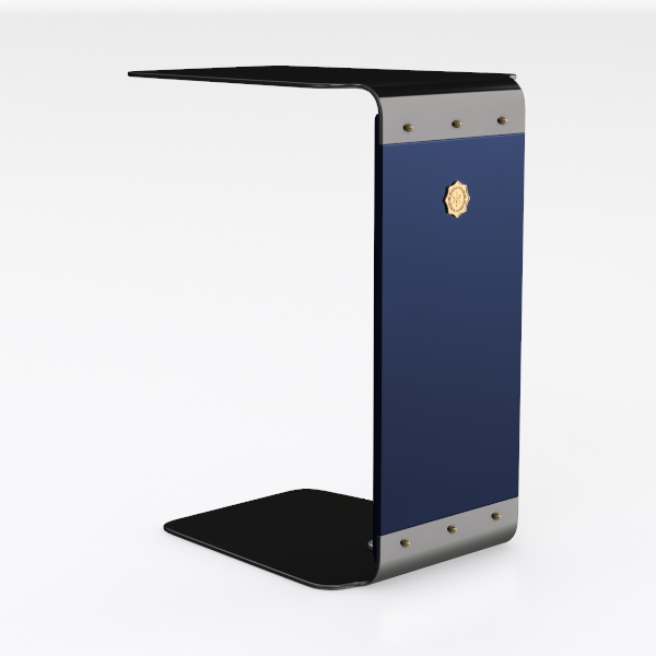 Inspired by vintage display design, this piece features deep navy matte panels, polished metal trims, and a gold octagonal medallion. Sleek, stable, and vertically elegant, it suits contemporary living rooms or studies, pairing with wooden furniture and metallic accents. A functional showcase for decor, adding refined charm to any space.