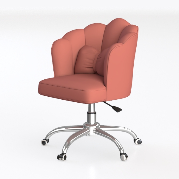 Inspired by blooming petals, its curved backrest and bow-shaped pillow add a romantic touch. The soft pink upholstery feels smooth and comfortable, while the metallic silver base with rolling wheels blends modern minimalism and elegance. Perfect for a cozy bedroom or chic home office, it complements wooden desks and metal side tables, elevating space's charm. The swivel design and smooth-rolling wheels ensure easy movement, with the plump bow pillow offering great back support for long hours.