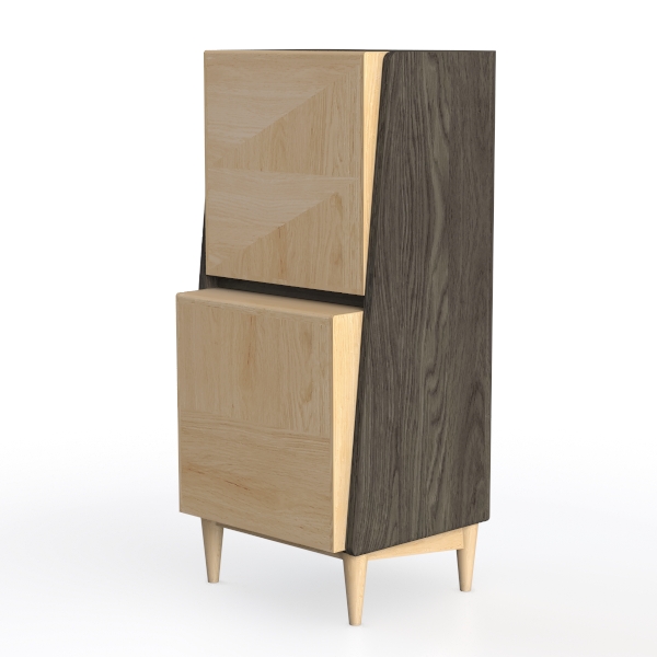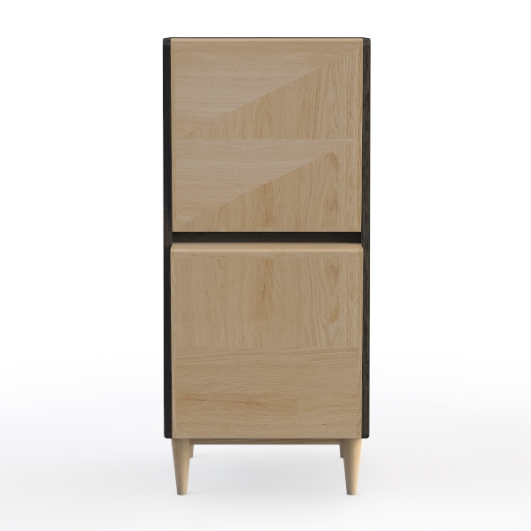 Inspired by natural geometric patterns, blending organic wood grains and clean lines. Warm wood texture with subtle grain details, paired with sleek black trims, creating a balanced, modern look. Perfect for minimalist or Scandinavian living rooms, ideal with light walls, linen sofas, and potted plants. Ample storage with smooth drawer pulls, stable wooden legs for steady daily use.