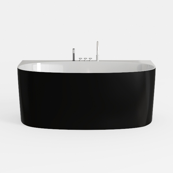 67 Inch Acrylic Freestanding Bathtub - Striking Black Exterior/White Interior, Chrome Drain & Overflow Set - Spacious Stand Alone Tub for Indulgent Deep Soaking,Marine