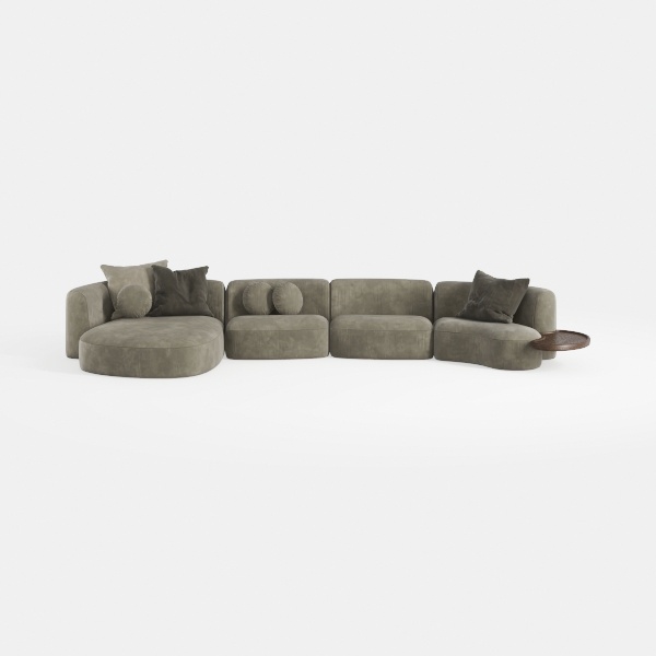 Drawing inspiration from organic, flowing forms found in nature—think smooth seashells or gently curved clouds—this sofa embodies a sense of softness and harmony, eschewing harsh angles for warm, rounded lines.