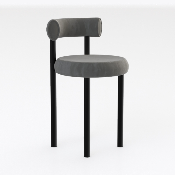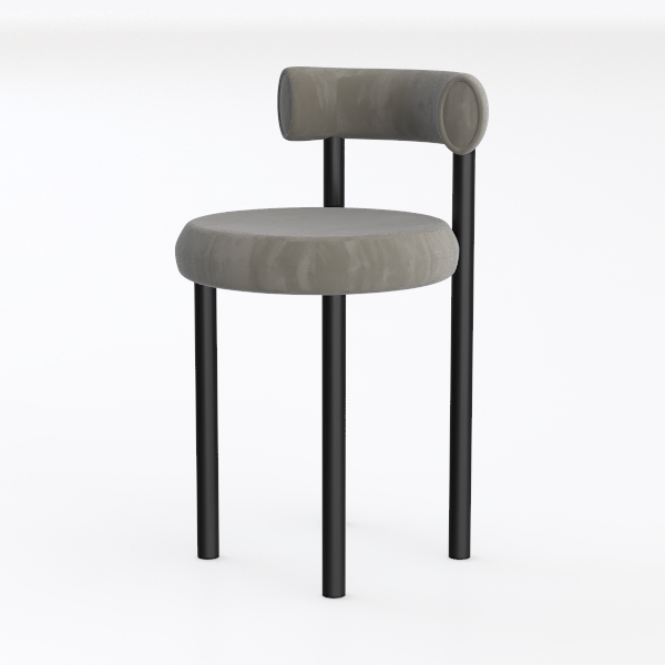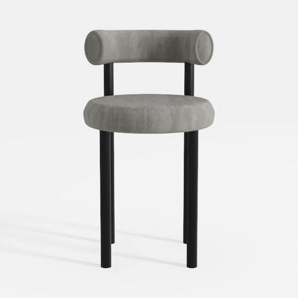 Drawing inspiration from minimalist Nordic aesthetics, this chair boasts soft, velvety upholstery with a smooth touch and sleek black metal legs for stable support. Its streamlined design, blending gray tones with black, exudes calm elegance, ideal for modern dining rooms or living spaces, complementing wooden tables or leather sofas. The curved backrest fits the back comfortably, ensuring long-lasting sitting comfort.