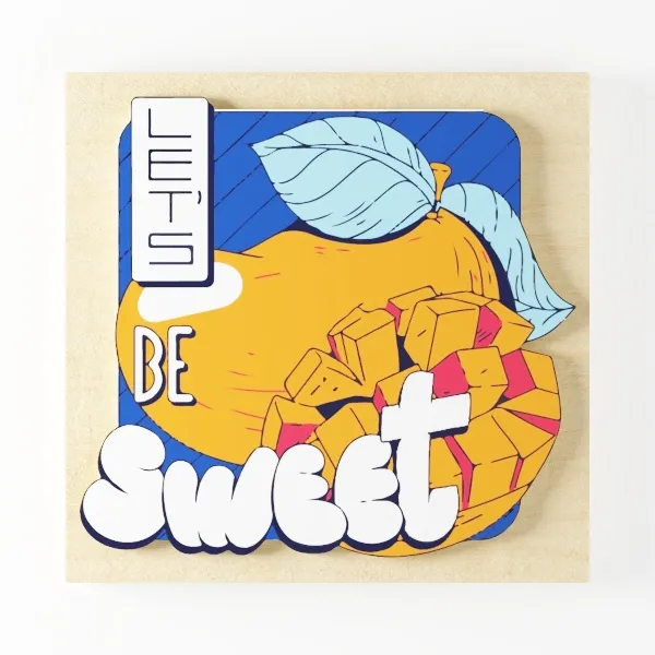 This graphic decor object features a stylized mango illustration with bold "LET'S BE SWEET" lettering, rendered in 2728 polygons, suitable for modern kitchens.