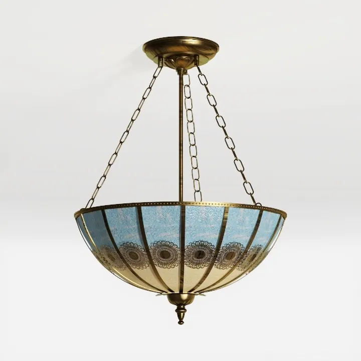 A 3D model of a Chandelier, featuring a blue glass shade, white inner light source, and metal hanging structure with a modern minimalist aesthetic. It has a low polygon count and is suitable for indoor decoration like living rooms or dining rooms.