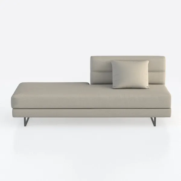 This elegant chaise lounge is designed to blend sophistication with comfort, drawing inspiration from minimalist modern aesthetics. The soft, neutral fabric invites touch, offering a plush surface that feels warm and inviting, while the sleek lines create a contemporary visual appeal.
