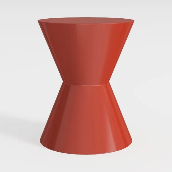 Designed with geometric symmetry, drawing inspiration from architectural minimalism, this crimson side table features a sleek, glossy surface that feels cool to the touch. Its curved silhouette adds dynamic visual flow, ideal for modern living rooms or Scandinavian spaces, pairing beautifully with minimalist sofas and sculptural floor lamps. A compact, stable base supports a generous top, perfect for small decor pieces, balancing style and practicality.