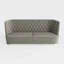 A contemporary sofa designed with grey tufted upholstery and subtle gold accents, featuring 652368 polygons for detailed rendering in living room scenes.