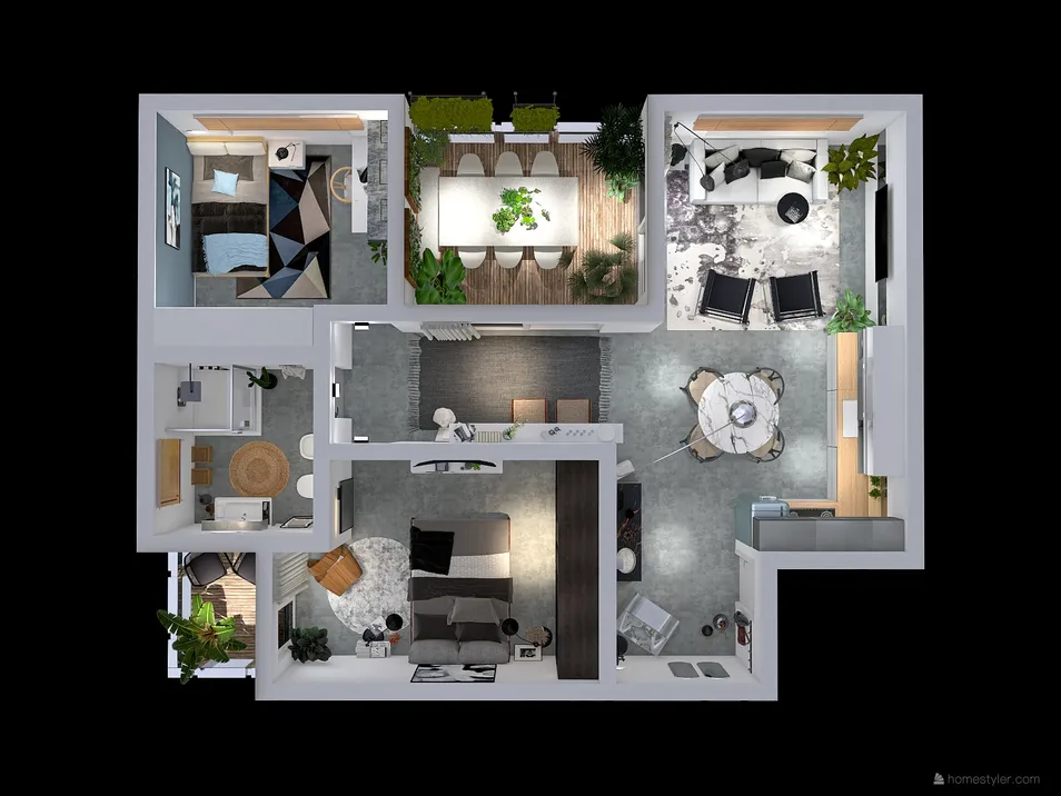 68 square meters flat with two bedrooms and one bathroom. 11.5 square meters terrace and 3.5 square meters balcony. Hello everybody, I'm Matteo, I'm 18 years old and this is my very first project. I have no experience in interior design but I'm kinda satisfied about this first experiment. I'm here to improve myself so let me know what you think! Do you like it? Walk in my project! https://panorama.homestyler.com/v2?id=gTwyU3VcWJLw4N4u2J9Yj8&m=np
