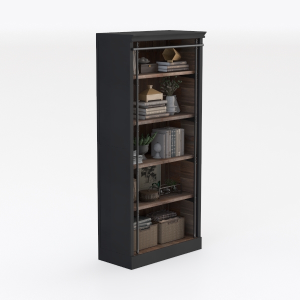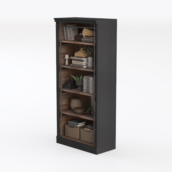 Liberty Furniture Meritage 84 Inch Bookcase for Home Office - Aged Charcoal w/Rub Thru & Caramel