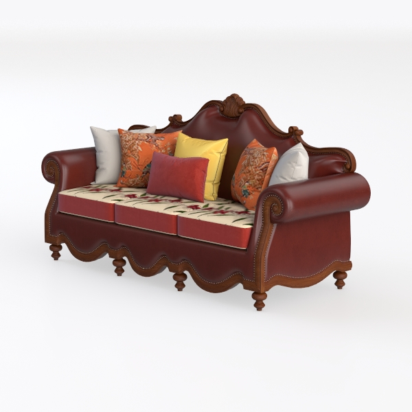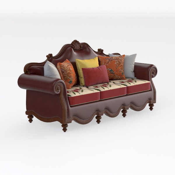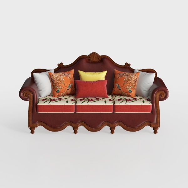 This luxurious sofa draws inspiration from classic aristocratic designs, marrying elegance with comfort. Its rich, deep red upholstery boasts a sumptuous texture that invites you to sink in and relax. The intricate carvings along the arms and back give the piece an ornate flair, while the plush cushions—adorned with vibrant floral patterns—provide a delightful contrast that enhances its overall aesthetic.