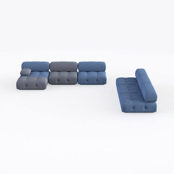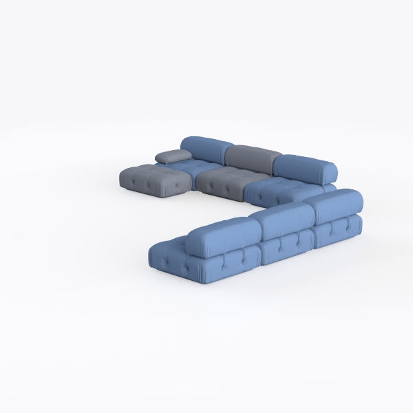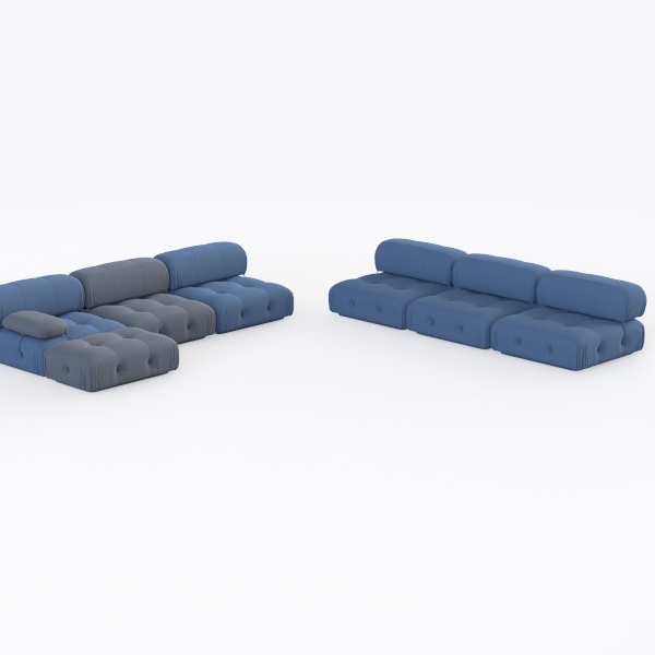 Introducing a stunning seating arrangement that effortlessly combines comfort and style, this modular sofa is the epitome of modern design. Inspired by contemporary living spaces, its plush, tufted fabric invites you to relax and unwind, offering a soft and inviting texture that is pleasing to the touch. The two-tone blue color scheme enhances its visual appeal, making it a standout piece in any room.