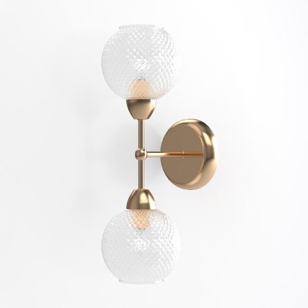 PERMO Double Sconce Vintage Industrial Antique 2 Lights Vantiy Light Dual Wall Sconces with 5.9" Round Clear Glass Globe Shade (Antique Brass)