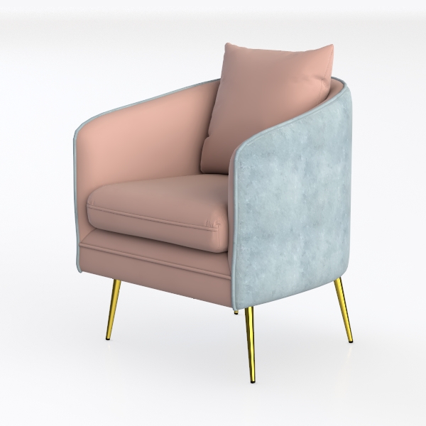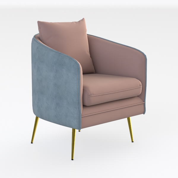 The chair's delicate pink fabric, complemented by soft blue accents, adds a refreshing pop of color, making it an accent piece in any room. Ideal for pairing with a sleek marble coffee table and metallic décor, this chair can effortlessly enhance a spacious living room or a cozy reading nook. The elegant golden legs provide a touch of sophistication, elevating the overall design.