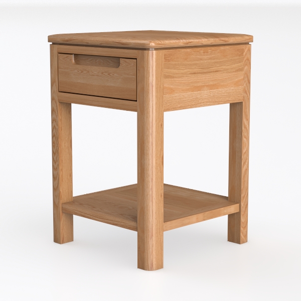 Practicality is key: a small, smoothly gliding drawer provides hidden storage for essentials like reading glasses or a phone, while an open lower shelf offers easy access to a favorite book or a decorative vase. Its sturdy, balanced structure ensures stability, making it both a functional piece for nightly routines and a subtle design element that elevates the overall aesthetic of the bedroom.