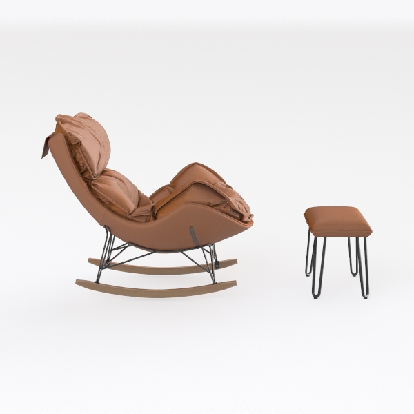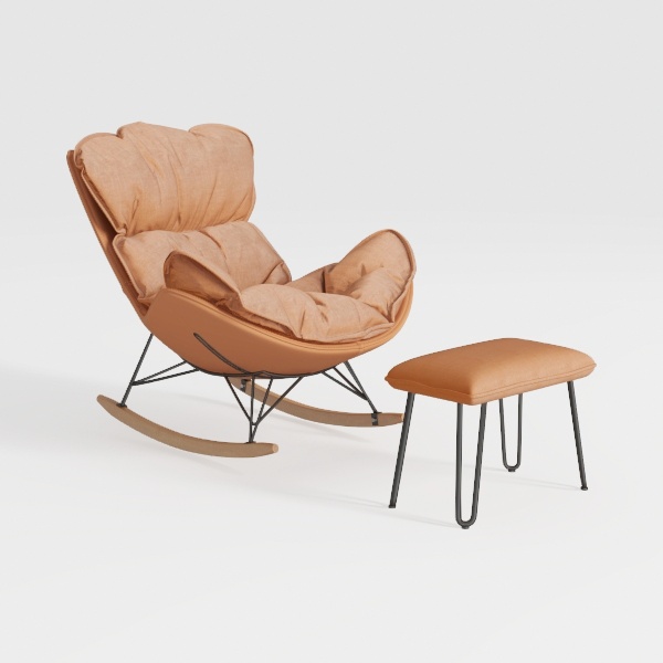 Functionality meets relaxation here: the rocking base encourages gentle, rhythmic movement, perfect for unwinding, while the included footstool—with its matching terracotta upholstery and slender black legs—complements the chair, allowing you to stretch out fully. Whether you’re curling up with a book or savoring a quiet moment, this set delivers both visual appeal and everyday comfort.