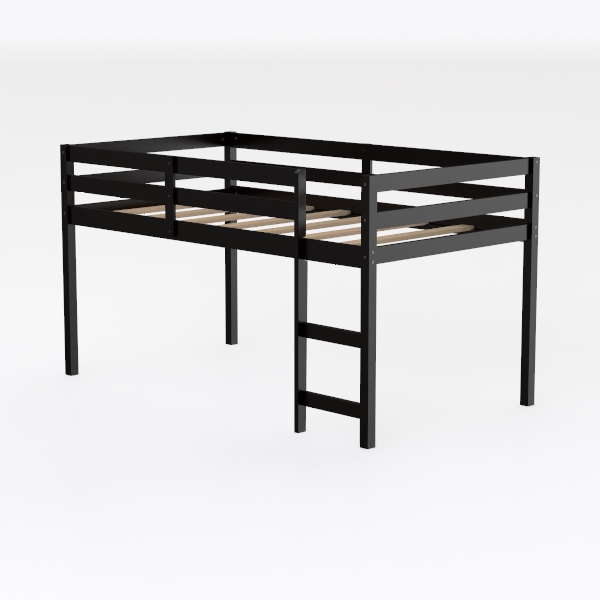 Pemberly Row Transitional Junior Twin Loft Bed in Black Finish