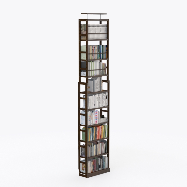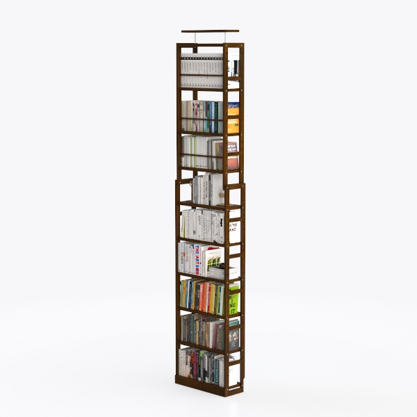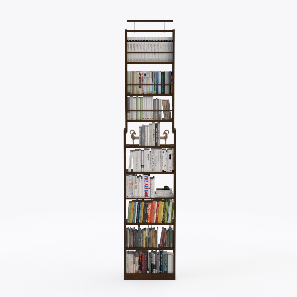 Inspired by the harmonious fusion of minimalism and practicality, this piece reimagines book storage by prioritizing vertical space efficiency, creating a structure that balances aesthetic grace and functional value. Crafted from warm, solid wood, its surface showcases subtle, natural grain patterns that catch light gently, while the smooth, polished finish offers a tactile contrast—cool to the touch yet invitingly grounded. The deep, rich brown hue infuses warmth, making it a versatile centerpiece that complements rather than overwhelms a room.