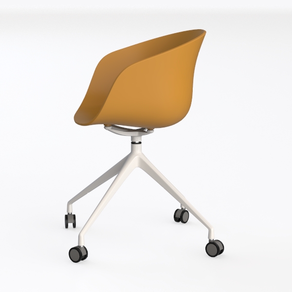 The contoured seat, shaped to cradle the body, ensures optimal support during extended sitting, while the five-point metal base with smooth-rolling casters allows effortless mobility, repositioning seamlessly in any space. Its lightweight design and space-saving footprint make it perfect for small apartments or flexible work environments, blending practicality with aesthetic appeal.