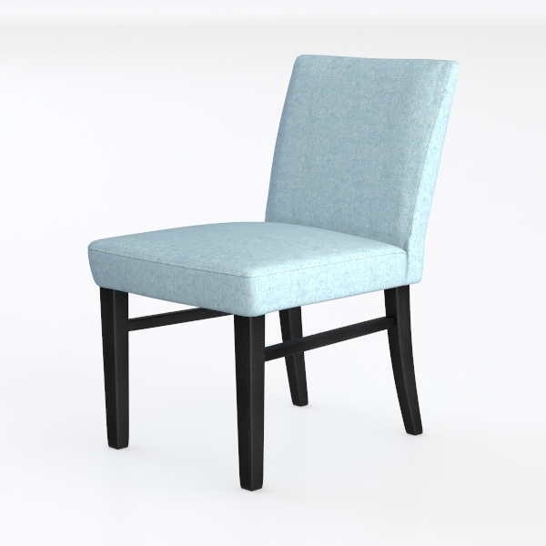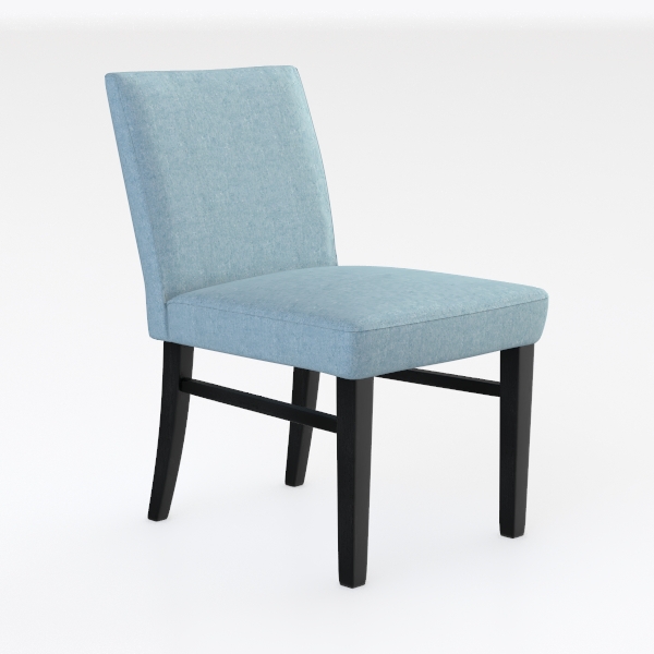 This chair takes cues from the quiet beauty of minimalist Scandinavian design, blending soft natural aesthetics with functional simplicity. The light blue upholstery, crafted from a textured fabric, feels surprisingly supple to the touch—like a well-worn linen that invites lingering. Its subtle, muted hue softens the eye, creating a gentle focal point that complements rather than overwhelms a room, while the sleek, matte black legs, with their tapering, geometric shape, add a modern edge, grounding the piece with quiet stability.