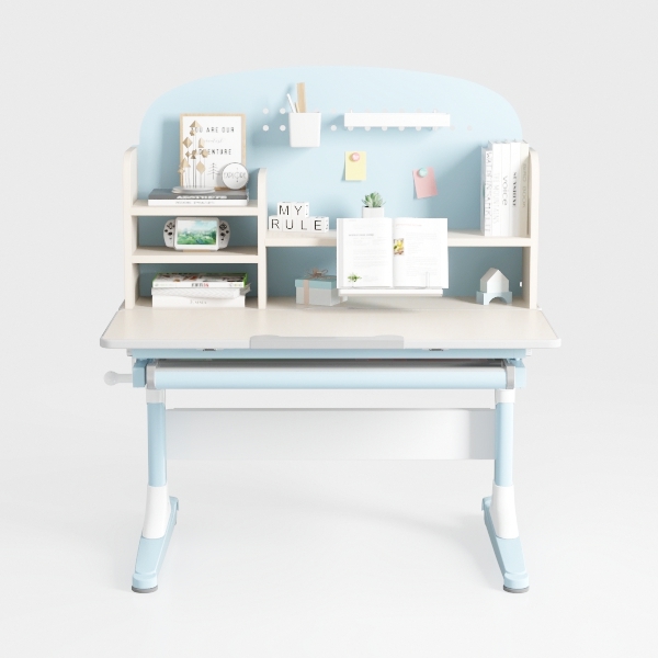 Designed to blend modern simplicity with warm functionality, this piece takes cues from creating a nurturing space for daily routines, whether for focused study or casual reading. Its soft blue and crisp white color scheme, paired with gently curved edges, exudes a calm, approachable charm that feels both fresh and inviting. The tabletop, with its smooth, matte finish, offers a cool, sturdy surface—light enough to glide your hand over but robust enough to hold books, notebooks, or a small potted plant.