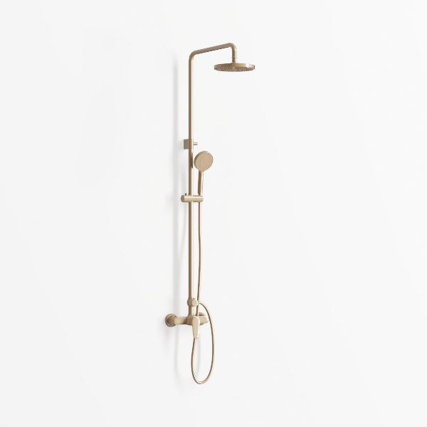 Thermostaic Shower Faucet Set Rose Gold, 8 inch Rainfall Shower Head with Handheld Shower, Brass Exposed Mixer Faucet Set, Wall Mounted Shower System