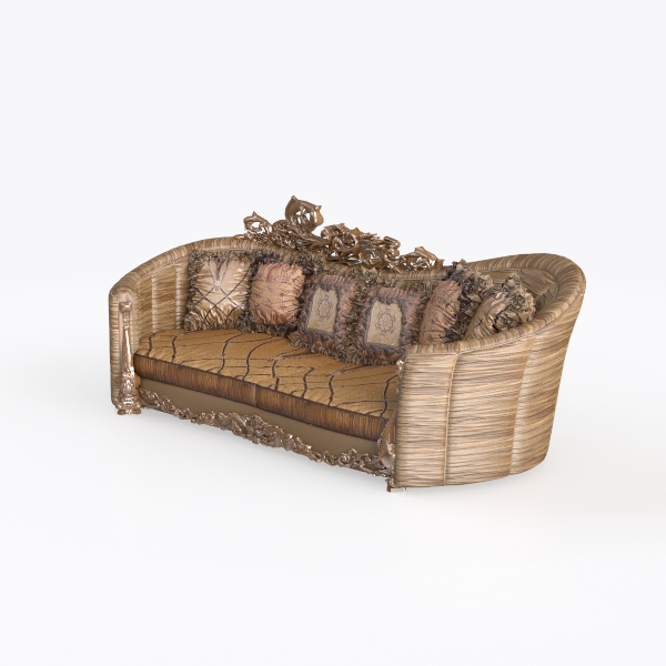 This exquisite couch embodies the grandeur of classic design, drawing inspiration from royal aesthetics and intricate craftsmanship. The mesmerizing textures invite you to touch, featuring a plush fabric that offers both softness and support, making it an irresistible addition to any sitting area. The ornate detailing along the armrests and backrest highlights the artistry involved, showcasing elegant curves and a luxurious finish.