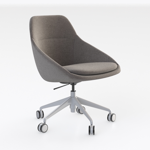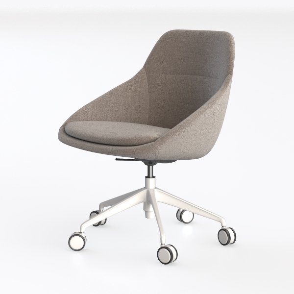 Visually, it exudes understated elegance: clean, unbroken lines define its silhouette, with a smooth transition from the backrest to the seat, and a sleek white metal base that adds a crisp contrast. The base, shaped like a geometric star with a matte finish, balances lightness and stability, while the four caster wheels, with their smooth, rounded edges, keep the chair gliding silently across floors.