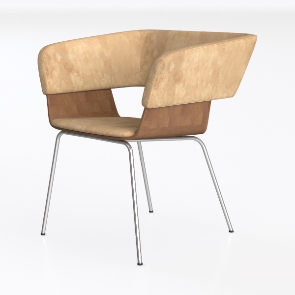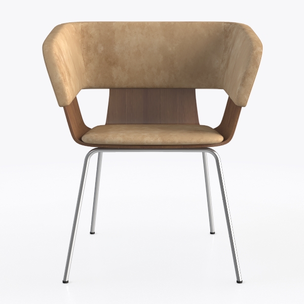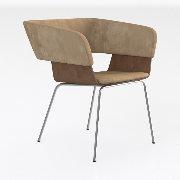 This chair embodies a design philosophy that merges organic softness with industrial precision, inspired by the interplay of natural curves and modern minimalism. Its seat and backrest feature a sumptuously soft, suede-like texture that feels warm and inviting to the touch, while the deep brown wooden frame—with its smooth, grainy surface—adds a rich, tactile depth. The polished silver metal legs, thin and sleek, provide a cool, contemporary contrast, enhancing the chair’s light, airy silhouette.