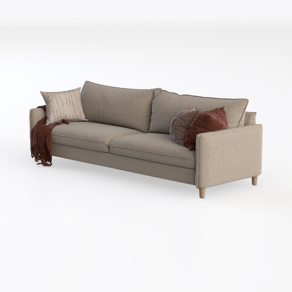 Inspired by the timeless elegance of Scandinavian design, this sofa embodies a perfect blend of comfort and sophistication. The soft, textured fabric invites you to sink in and unwind, while the natural wood legs add a touch of warmth and earthiness. Visually, its neutral tones harmonize effortlessly with various color schemes, making it a versatile addition to any living space.