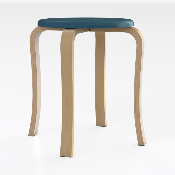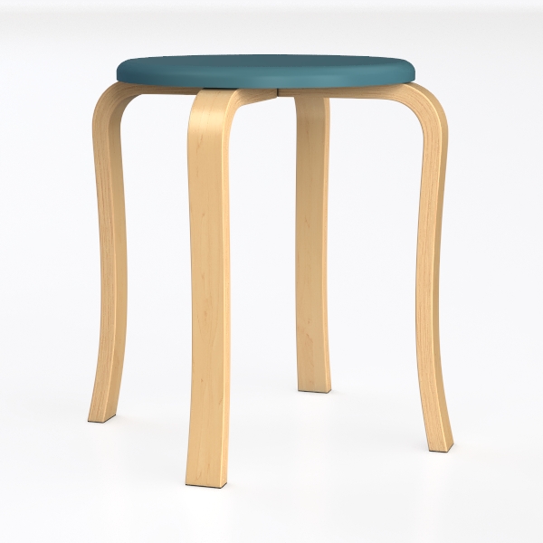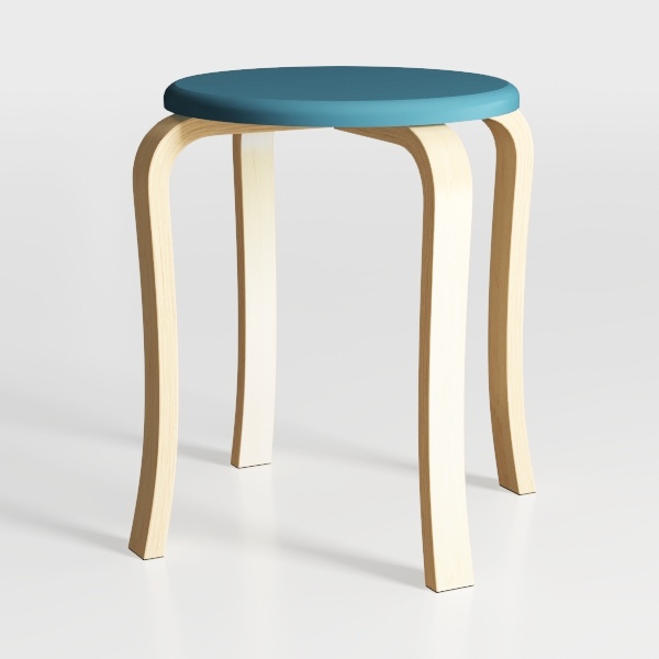 This small stool draws design inspiration from the organic fluidity of nature, merging the gentle curves of tree branches with minimalist Scandinavian design principles. The round, vibrant teal seat, upholstered in a soft, slightly textured fabric, feels cool and inviting to the touch, while its smooth surface contrasts beautifully with the light, sanded wooden legs—bending into elegant, sinuous arcs that rise from the base to cradle the seat. The legs, with their natural wood grain and polished finish, reflect soft light, giving the piece an airy, unobtrusive presence that feels both modern and warm.