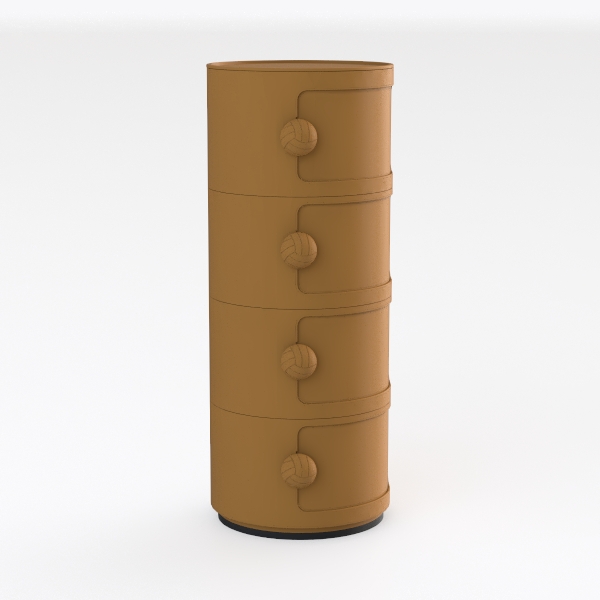 Four generously sized drawers, each with a soft-closing mechanism, provide ample storage for small essentials—think jewelry, stationery, or bedtime books. The cylindrical shape maximizes vertical space without overwhelming the room, ensuring it serves both functional and aesthetic purposes, blending utility with timeless style.