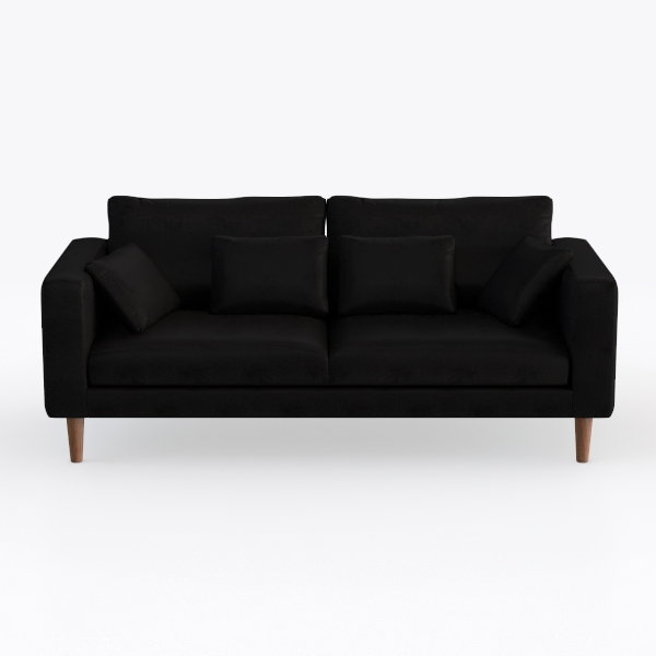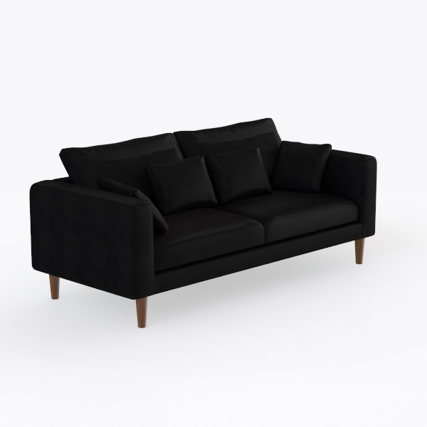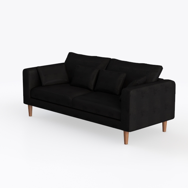 This elegantly designed sofa draws inspiration from minimalist aesthetics, showcasing a sleek silhouette that effortlessly complements modern decor. The rich black upholstery exudes sophistication while offering a soft, inviting texture, making it a cozy retreat for relaxation. Its clean lines and subtle, wooden legs create a harmonious balance, enhancing the overall visual appeal.