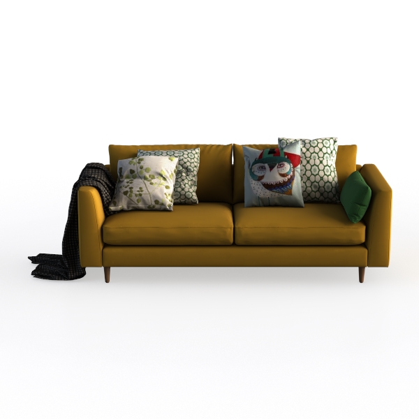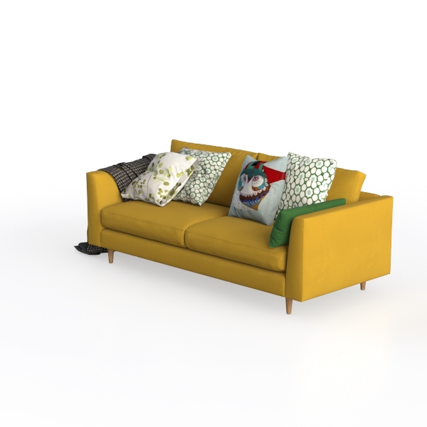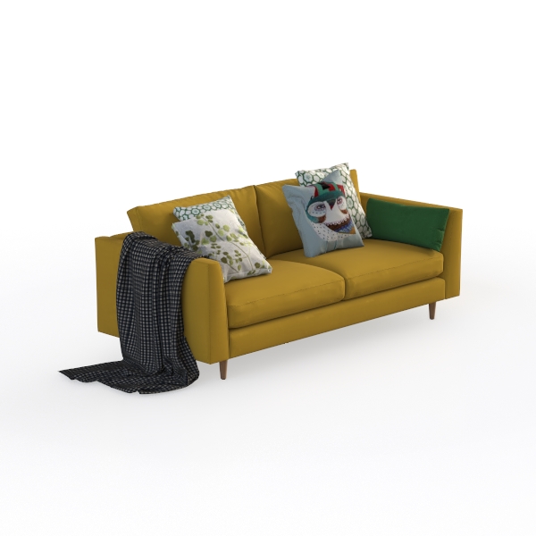 Inspired by mid-century modern aesthetics, this vibrant yellow sofa brings a splash of color and character to any living space. The rich fabric showcases a soft yet durable texture, inviting you to sink in and enjoy moments of relaxation. Accompanied by an assortment of decorative pillows featuring playful patterns and textures, it creates a visually appealing focal point that can either stand alone or complement your existing décor.